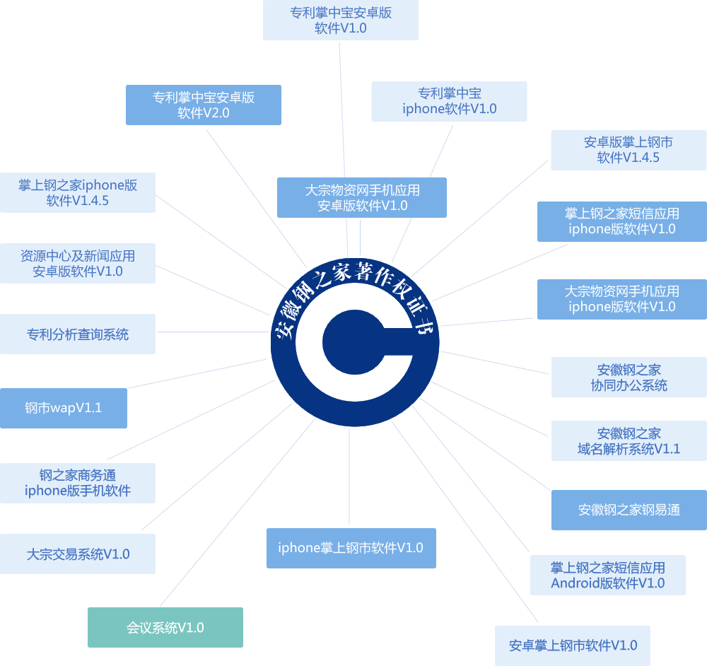 安徽鋼之家與馬鞍山知識產權局保持著長期緊密的合作。2012年12月,在市知識產權局的指導下,成功開發了“專利掌中寶”移動專利執法系統及馬鞍山市區域專利數據庫檢索平臺等項目。2013年12月,公司將主要技術力量投入到專利數據庫分析平臺研發上,積極開發“基于云計算專利數據庫分析系統”,為馬鞍山本地企業“泰爾重工”和“華菱星馬汽車”定制開發了符合企業特色需求的專利分析平臺。